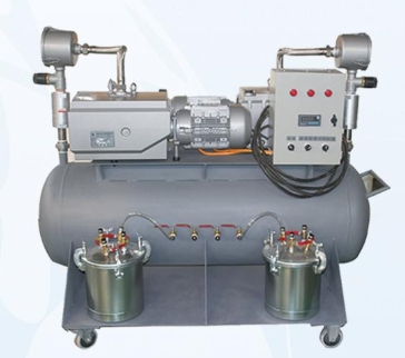 真空導入系統(tǒng)是一款集真空泵、真空罐、集料罐和控制系統(tǒng)為一體的,帶有自動和手動兩種控制形式的真空導入設備。在自動控制模式下,系統(tǒng)可事實監(jiān)控壓力,在負壓不足時自動運行真空泵